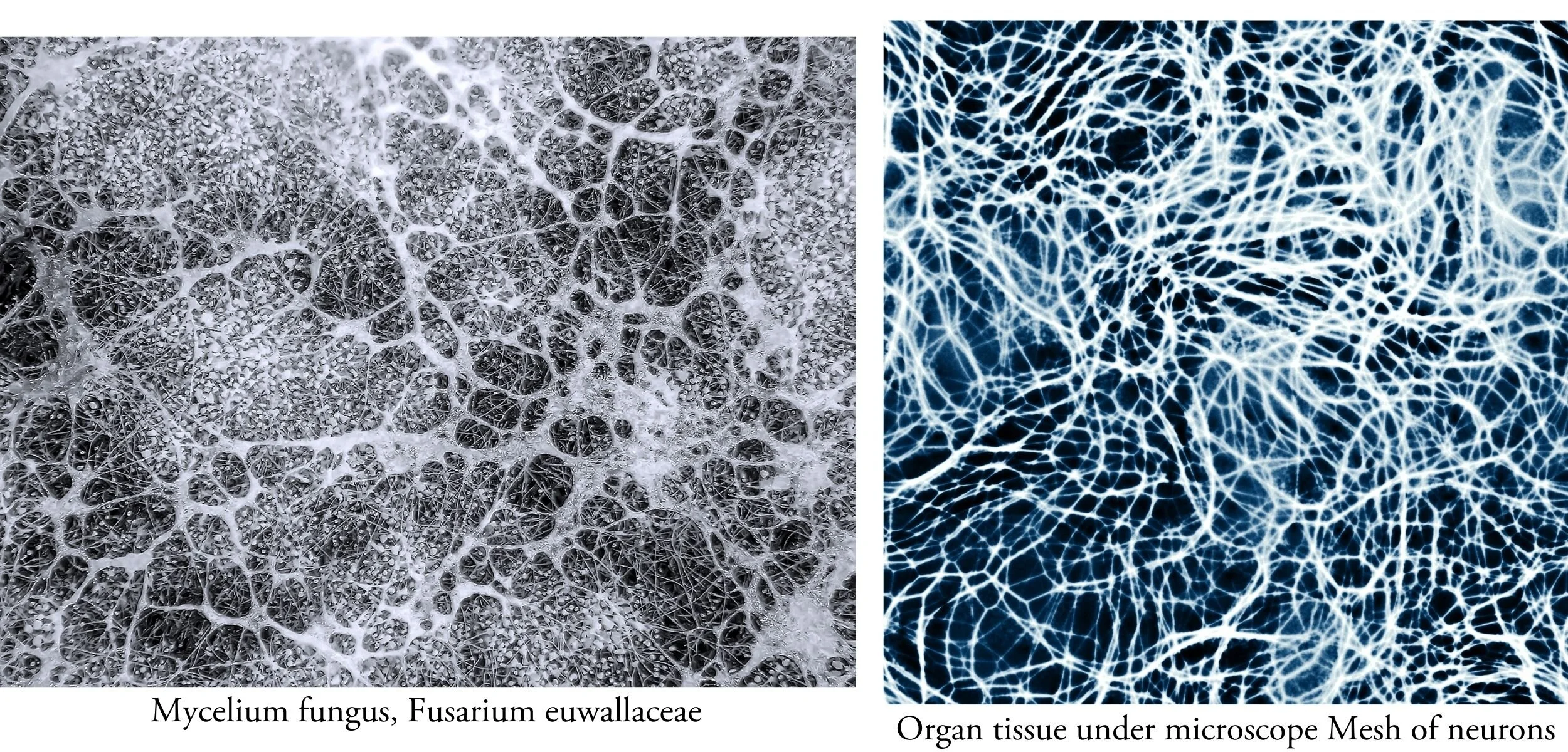 The pictures above depict a zoomed in image of the mycelium network on the left and a bundle of neurons on the right. In the same way that the mycelium network allows individual plants within the ecosystem to communicate with each other, we too have neurons and connective tissue which allow various parts of our body to communicate with itself. Acupuncture works upon stimulating the fascia and neuro-endocrine-immune systems to help the body communicate within itself more effectively.